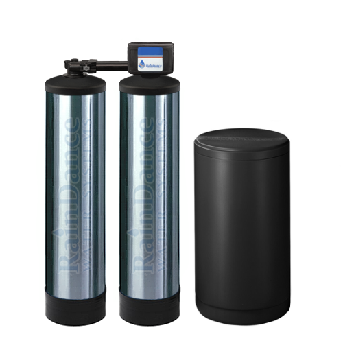 Metered, 1 1/2" Plumbing Ports, High Flow Twin Water Softeners from RainDance Water Systems. Softening systems for Large Homes, Apartments/Condominiums, Car Washes, Boiler Feed water, Hospitals, Laundries, Manufacturing Plants, Office Complexes, Institutions, Food Processing Plants, Cafes, Bars, Restaurants, Farms, and Businesses. Protect your equipment from hard water scale!